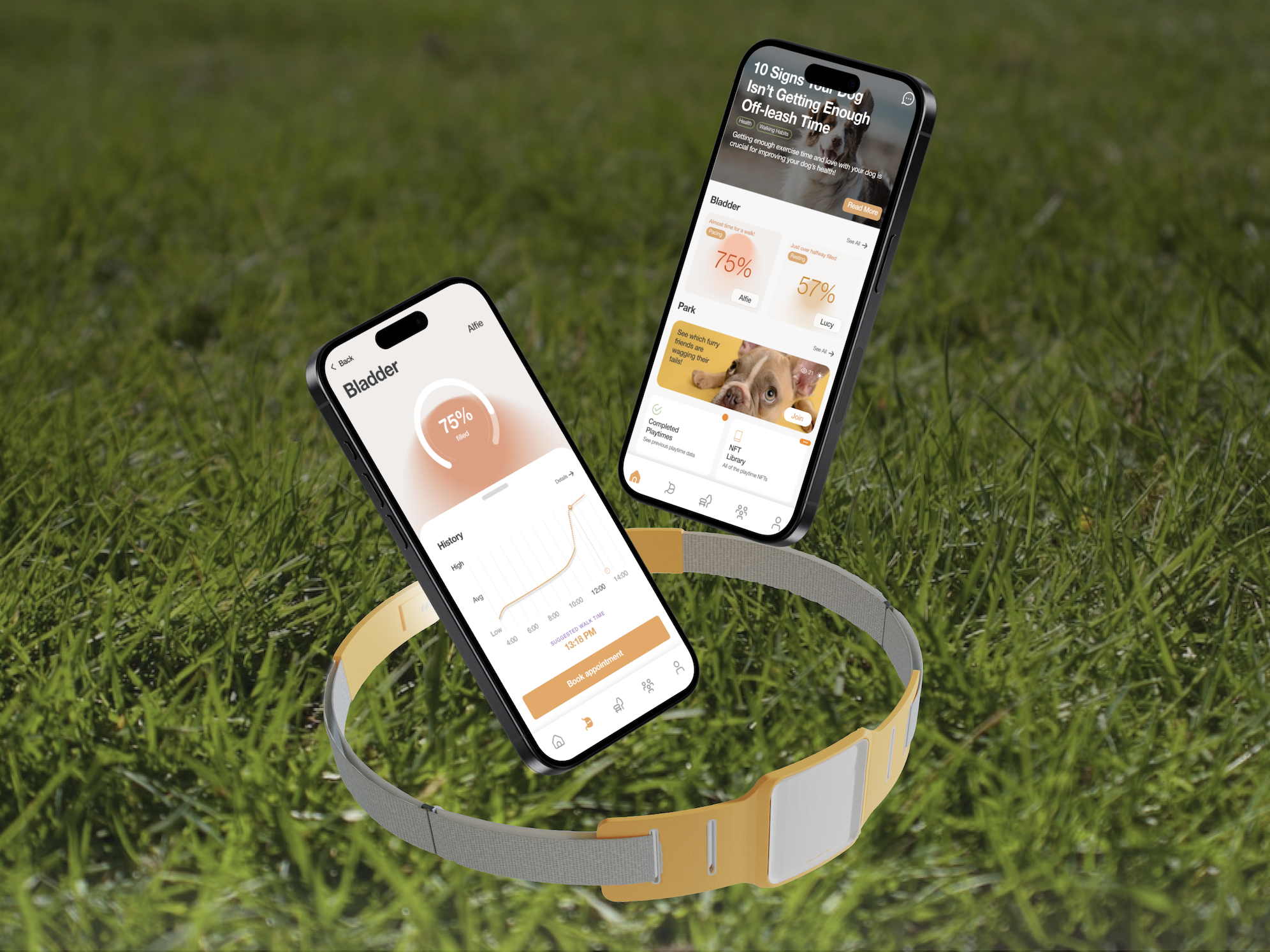 “Park” is a mobile app and non-invasive sensor gadget system that allows dog parents to monitor their pet's bladder fill and schedule walks accordingly.